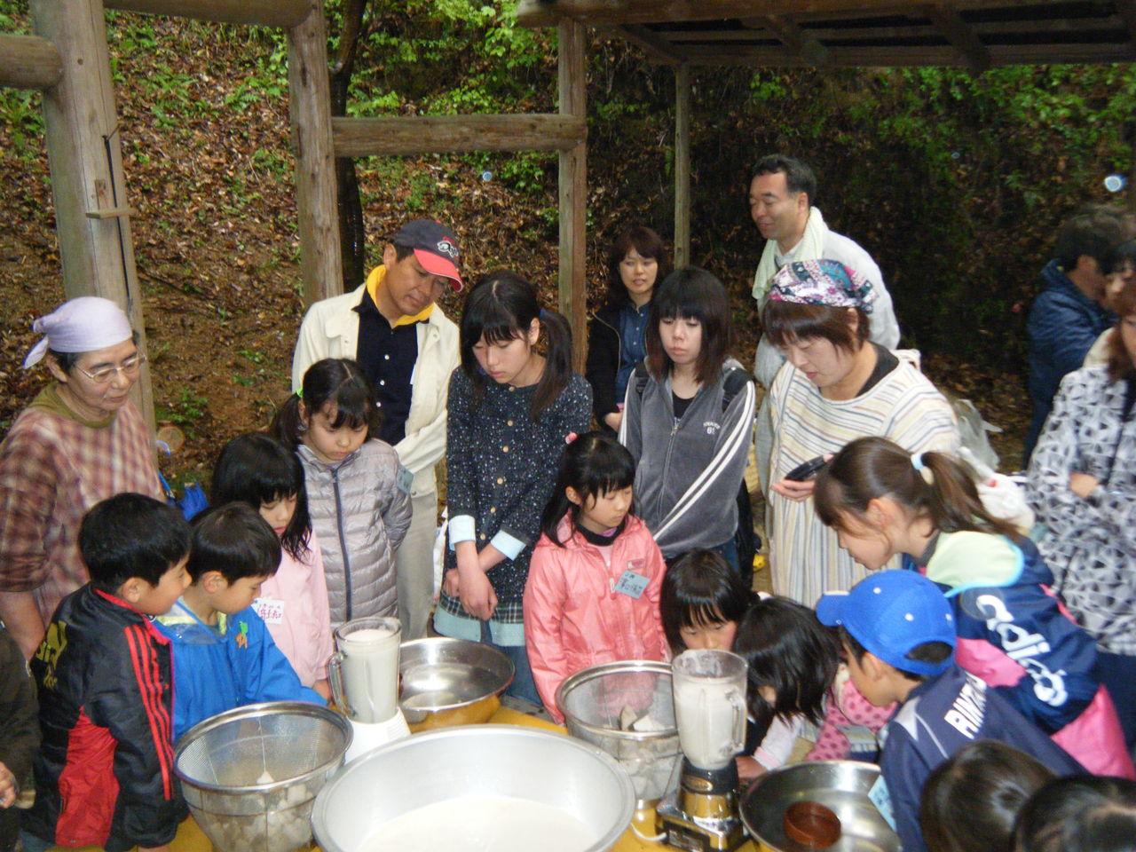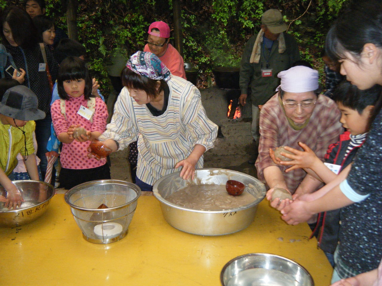 昼からはコンニャク作りとマイ箸作りです。地域でコンニュク作りをしている方々に