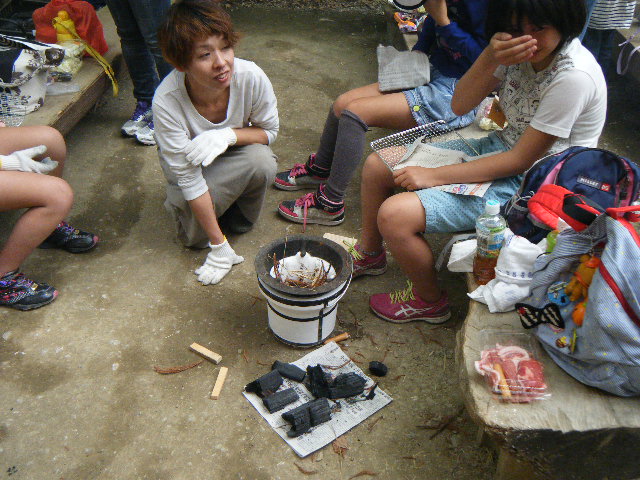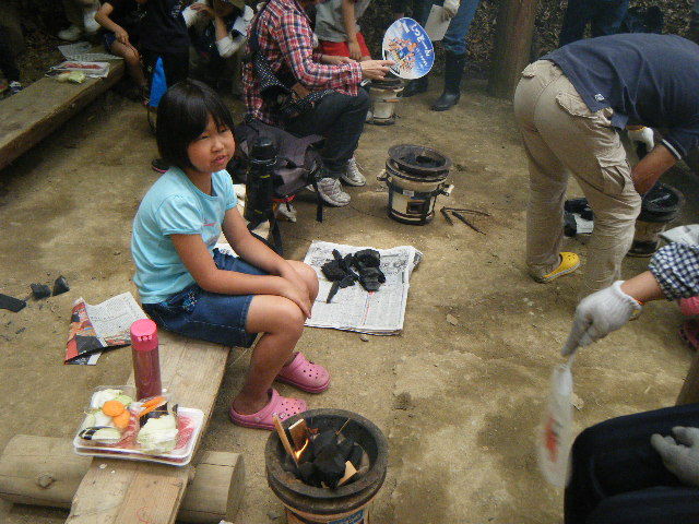 スミになかなか火がつがず、大苦戦!ここはお父さんの出番、なんとかスミに火が着き楽しい昼食となりました。