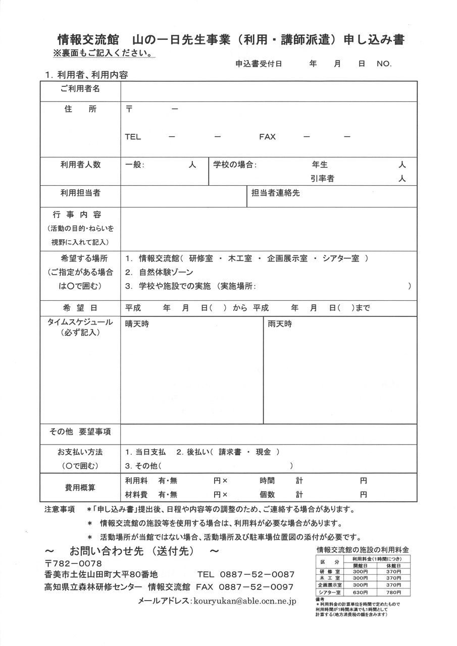 山の一日先生派遣事業 専用申込書②