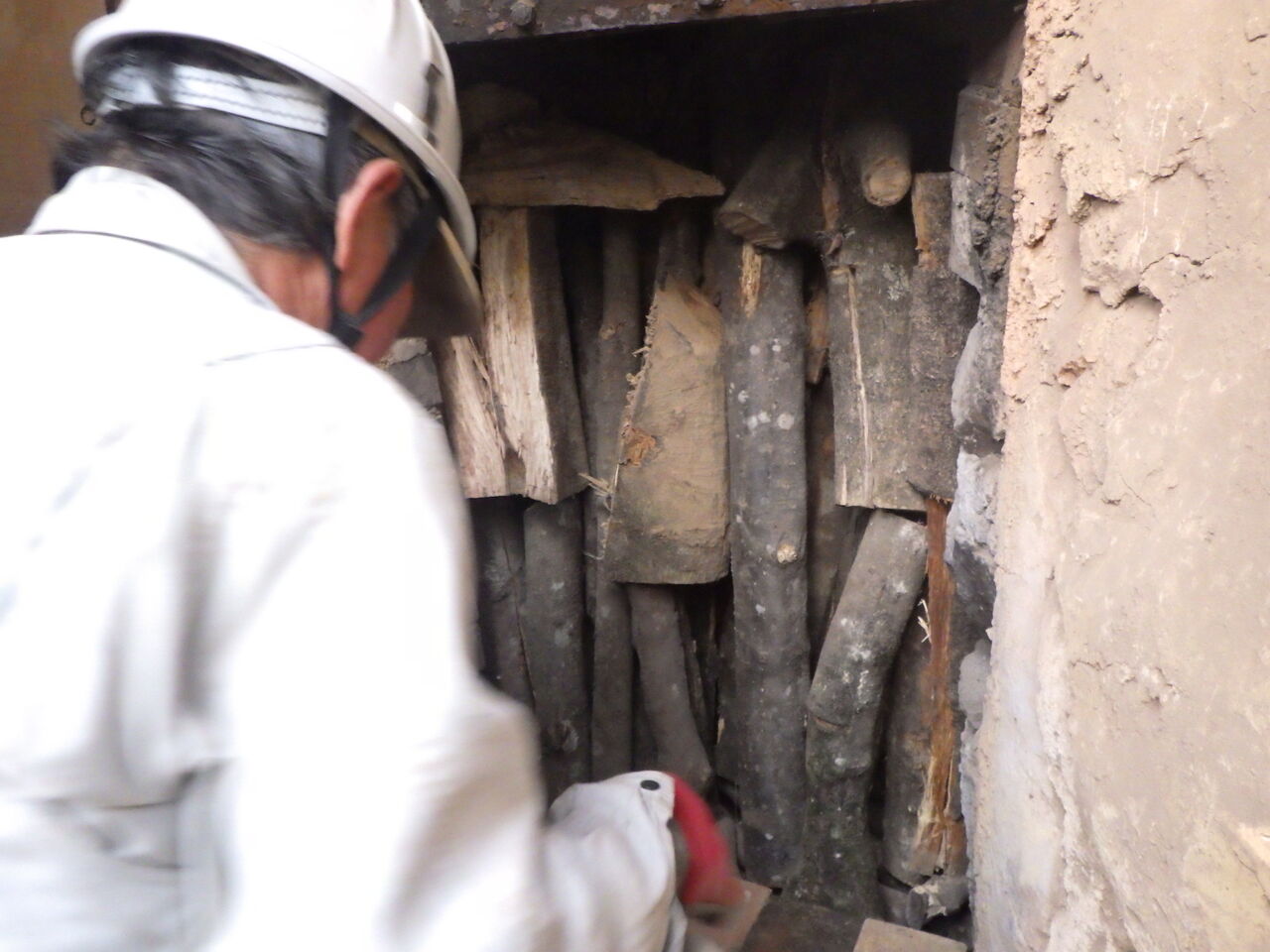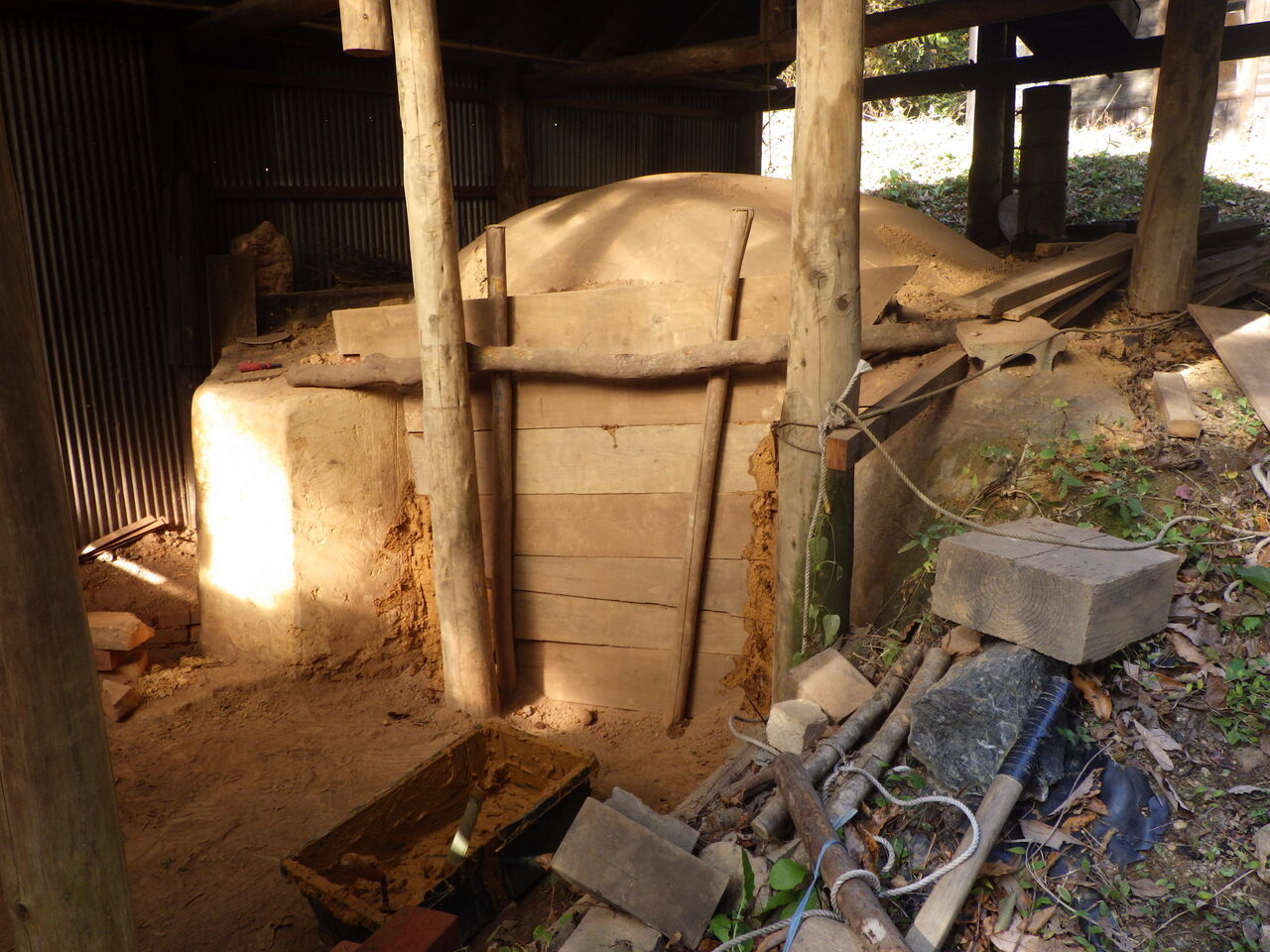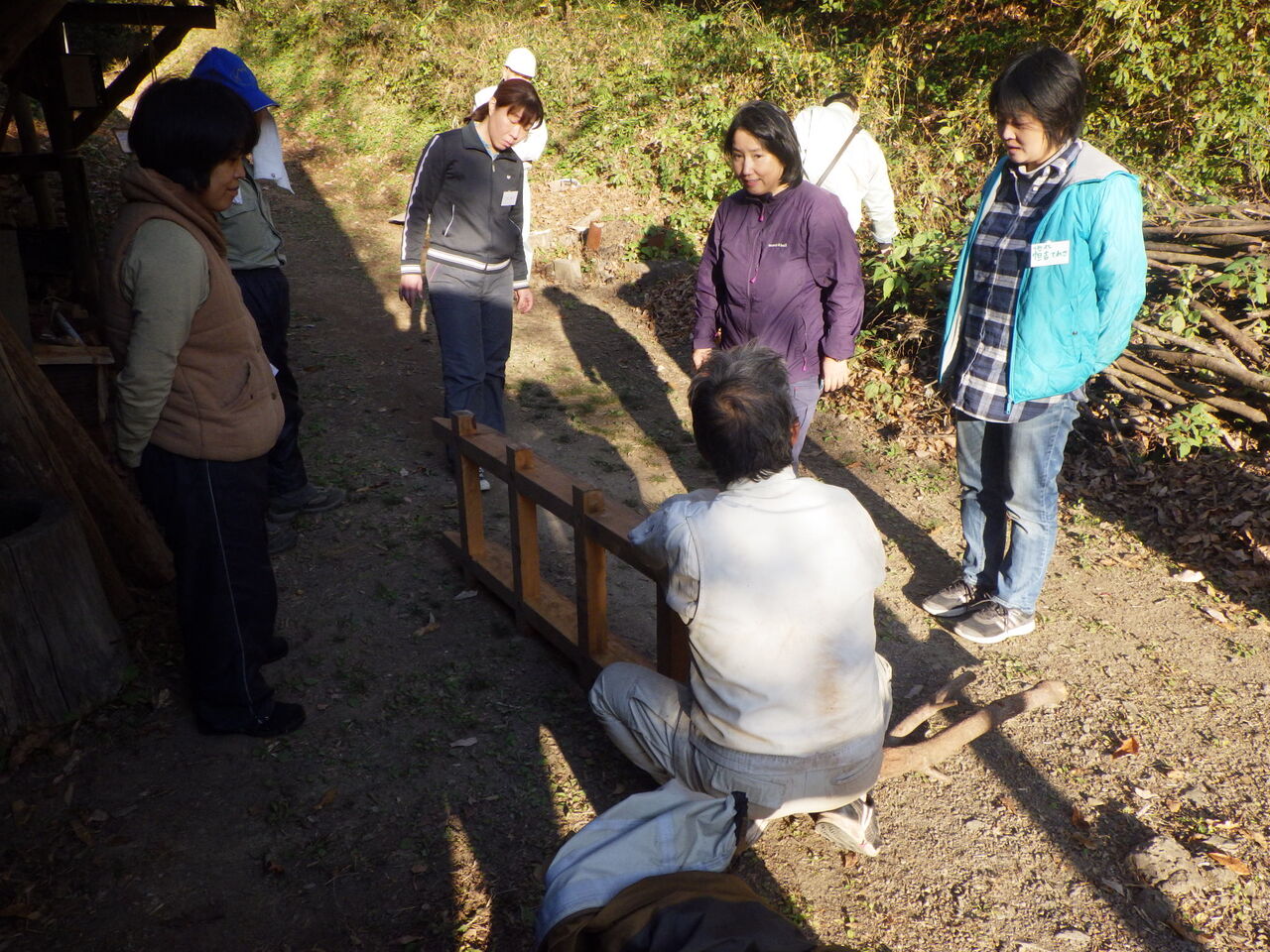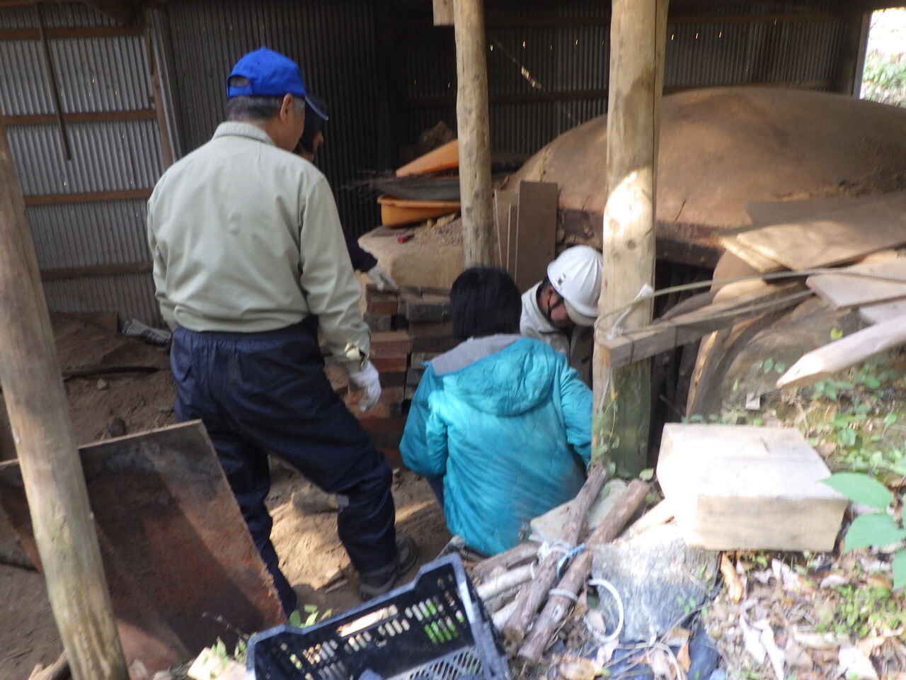 参加者の皆さんはとても積極的で、木を運んだり、赤土練ったり、2月の駒うちに使うクヌギを伐倒するなど、和気あいあいと楽しく活動できました。