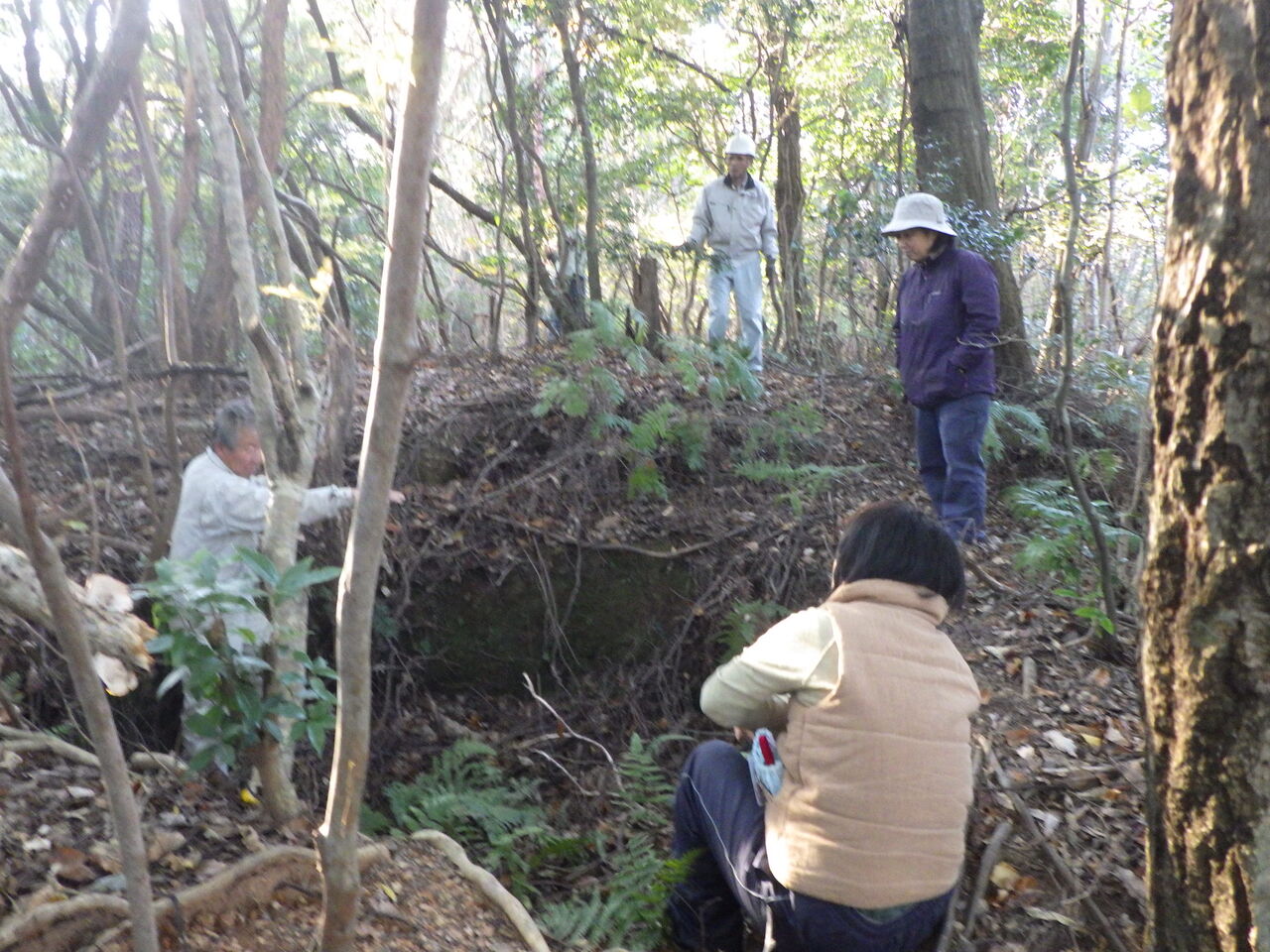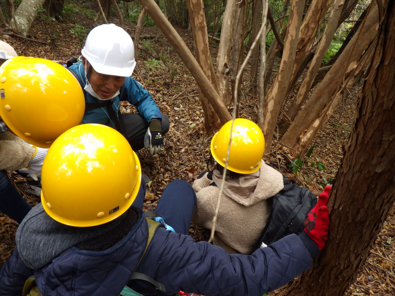 午後は里山散策をしながら炭窯跡巡りをしました。皆さん炭窯跡にも興味深々だったので、ついつい7つも巡ってしまいました。。「あれは散策ではなく‘‘藪こぎ‘‘だ!(笑)」と言われました!