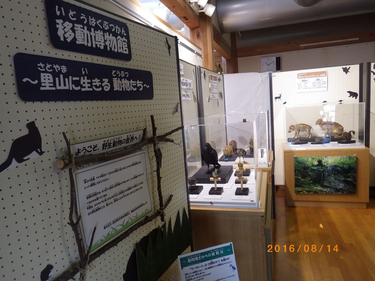 四国自然史科学研究センターさんのご協力のもと、情報交流館近くの里山林に生息する野生動物たちを中心に展示しています。