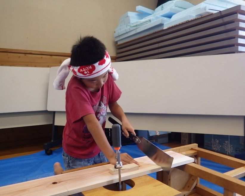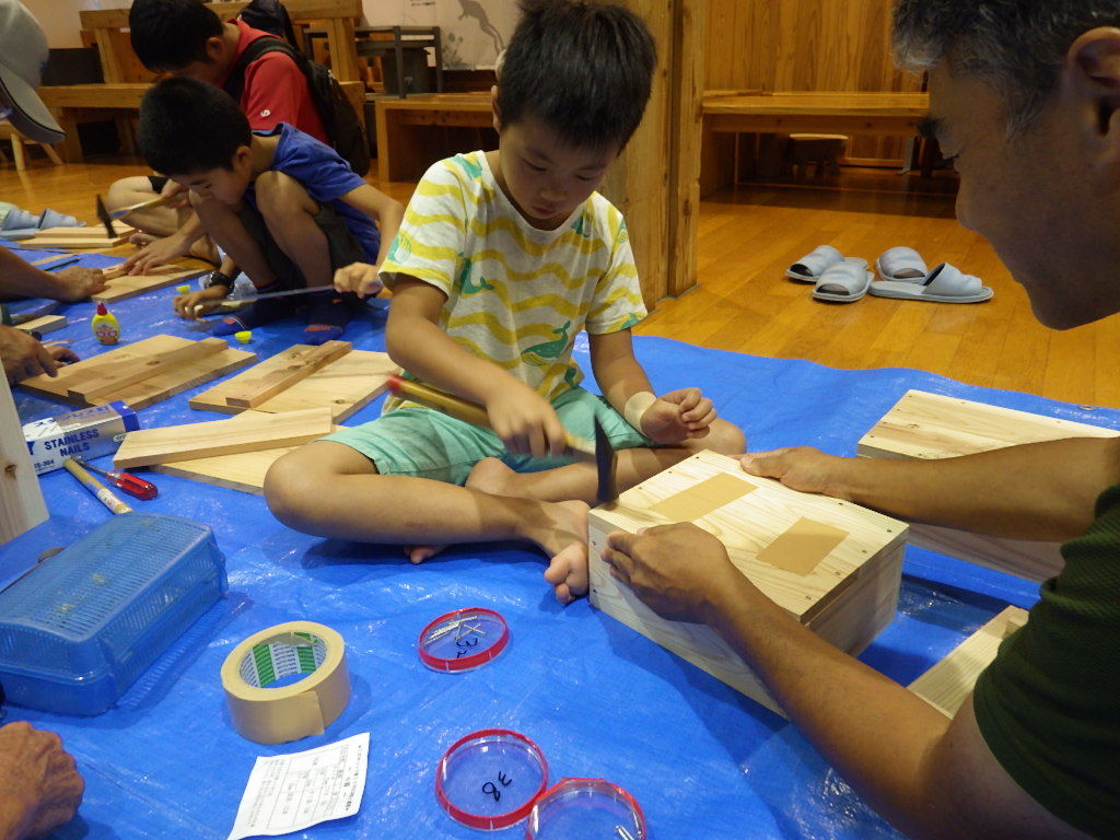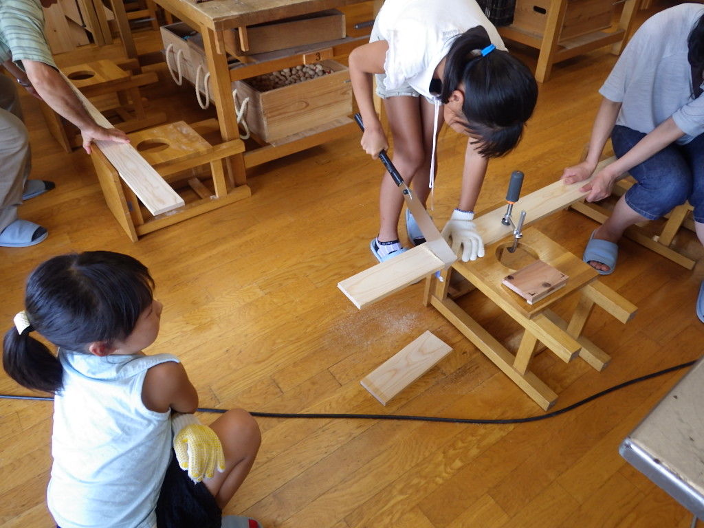 午前の部、午後の部で64名の子どもたちが夏休みの木工体験に来てくれました。