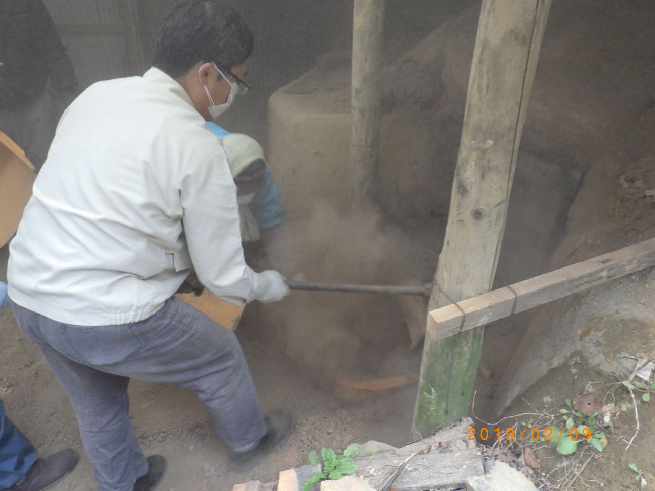 くらしと炭焼きの会の岡﨑さんの指導のもと、炭焼き体験を行いました。