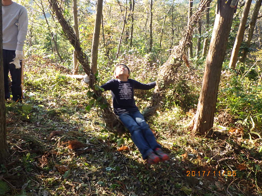 カズラを森の中から集めて来て、カズラだけでブランコを作っちゃおう!というワイルドなものです。