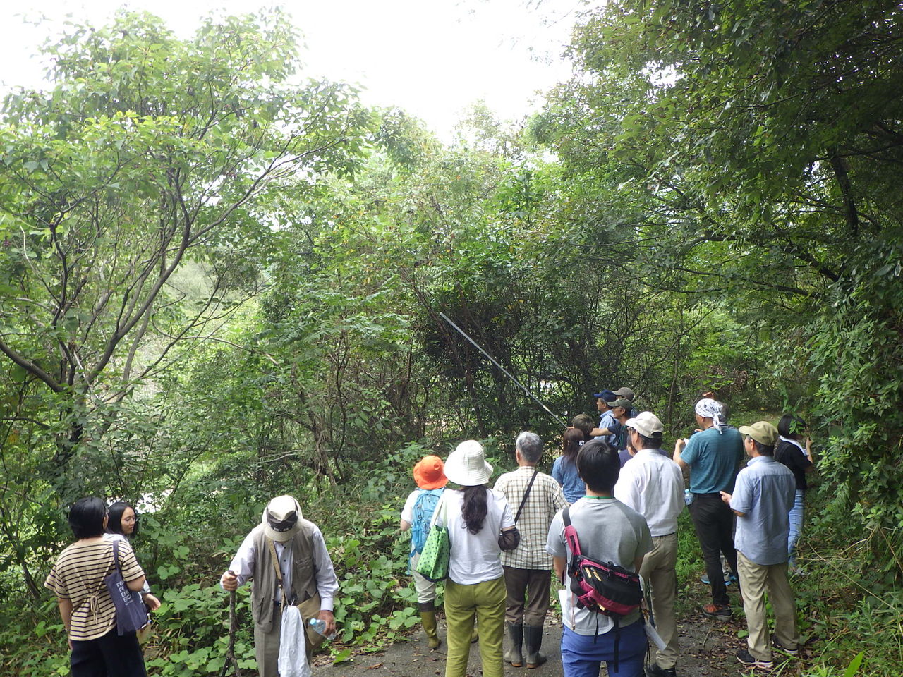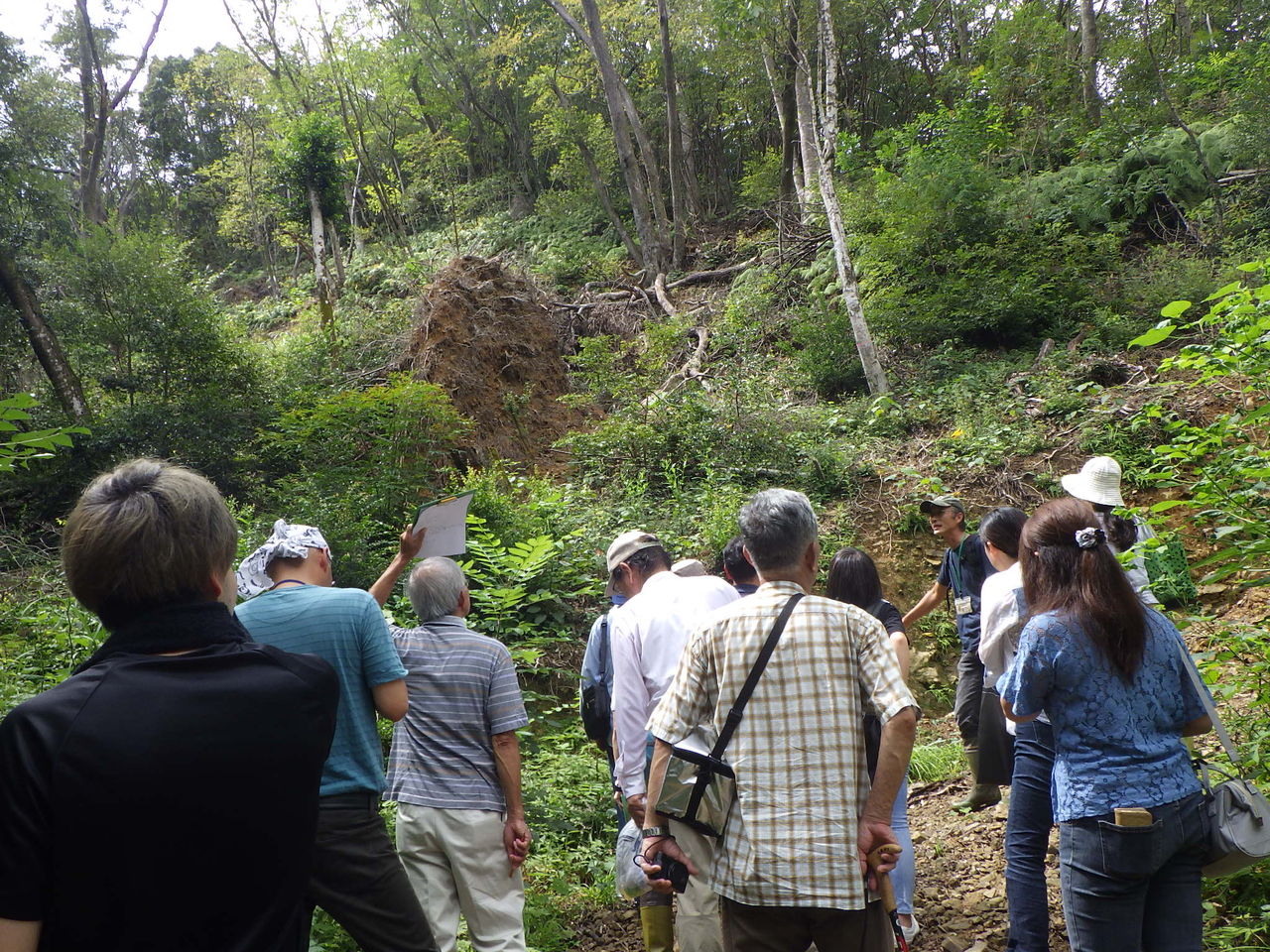 講義の後は、実際に森林内を歩きながらの学習です。