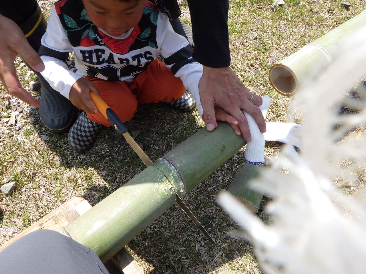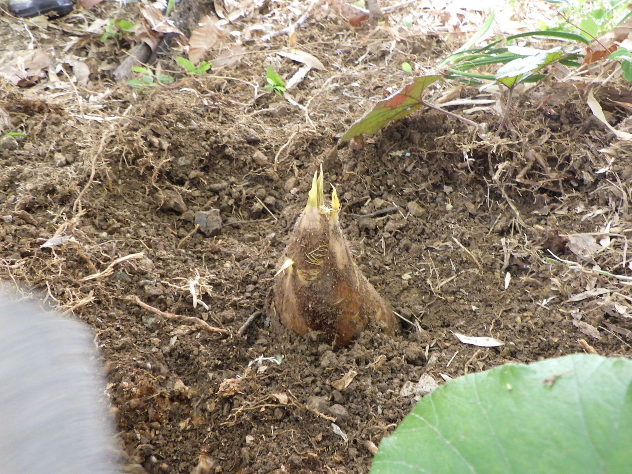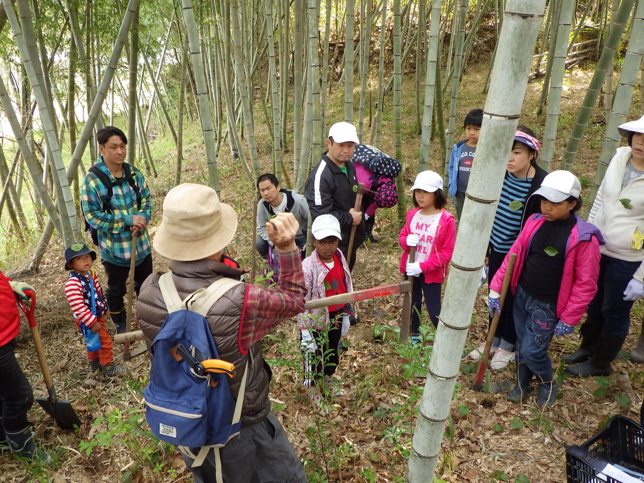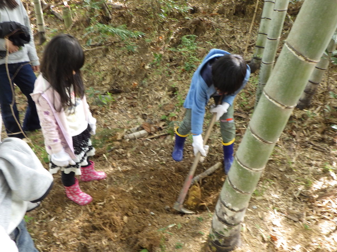 今年は、タケノコ掘りの時期としてはちょっと早かったので、「タケノコを見つけるのは大変だけど、土をかぶっているタケノコはやわらかくておいしいから頑張ろうね!」とボランティアさん。