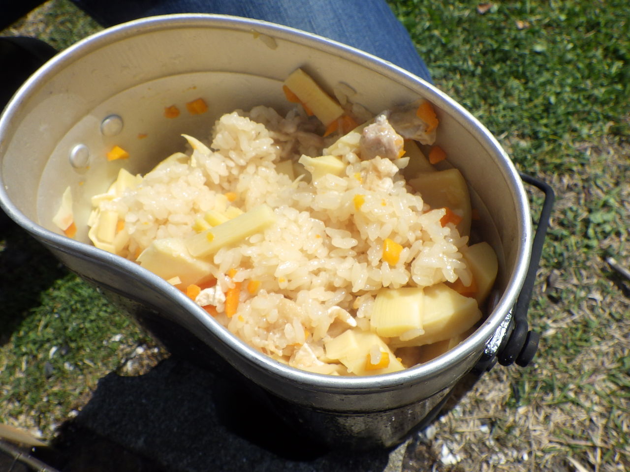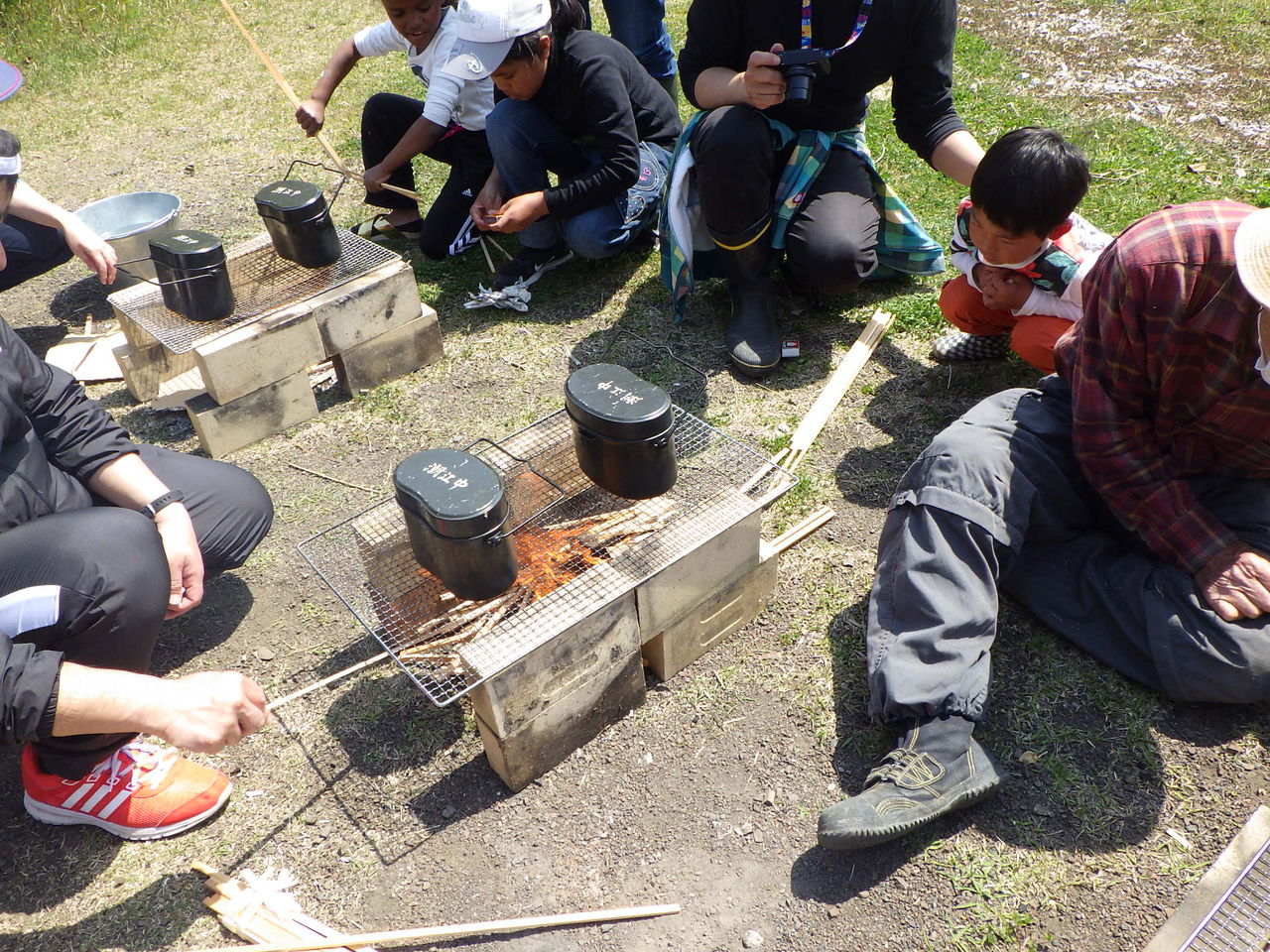 さっそくご飯を炊きます。今回はハンゴウを使ってご飯を炊きました。