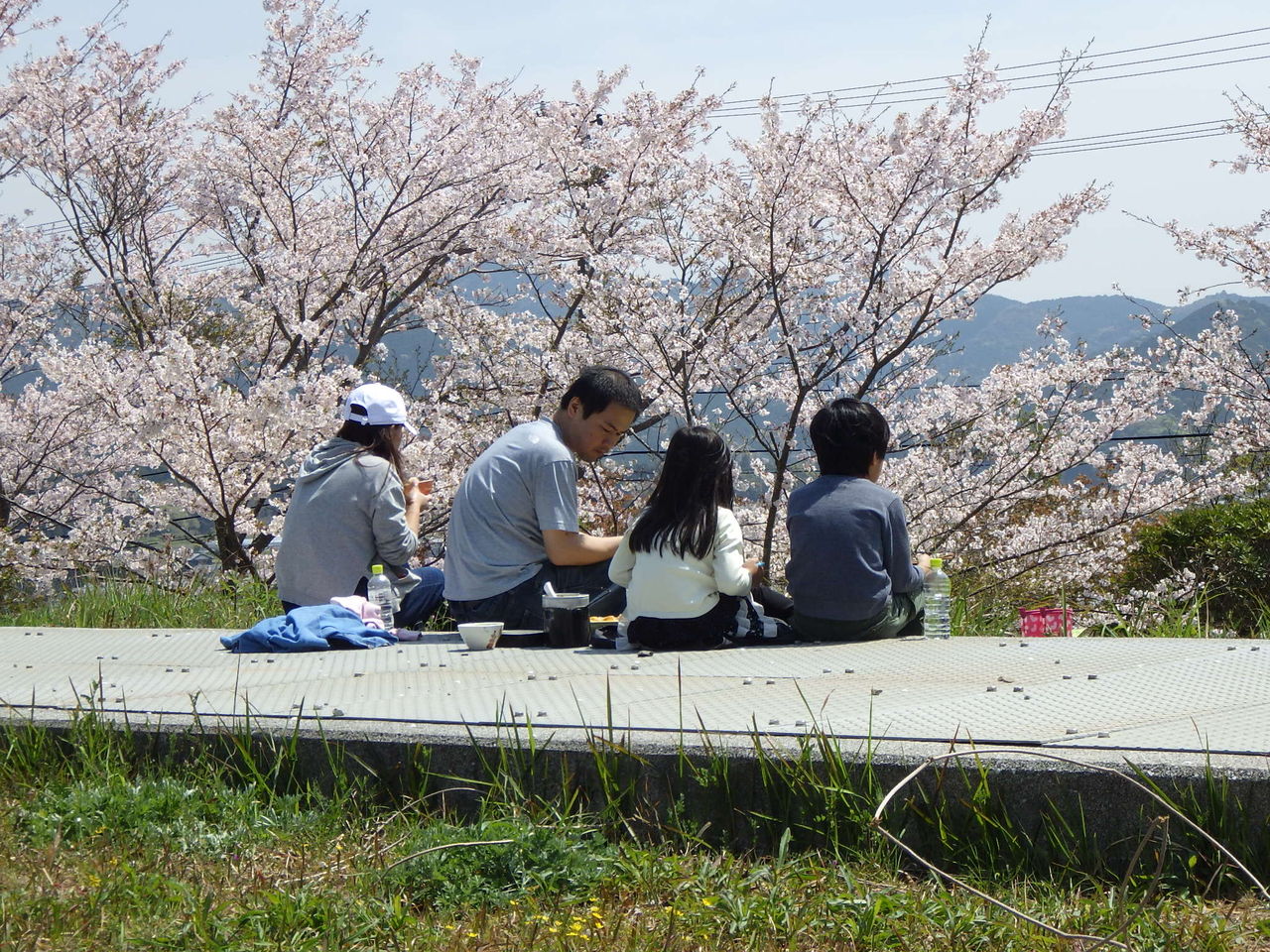 今年はちょうど桜も満開!お花見しながら出来立てのご飯を頂きました。