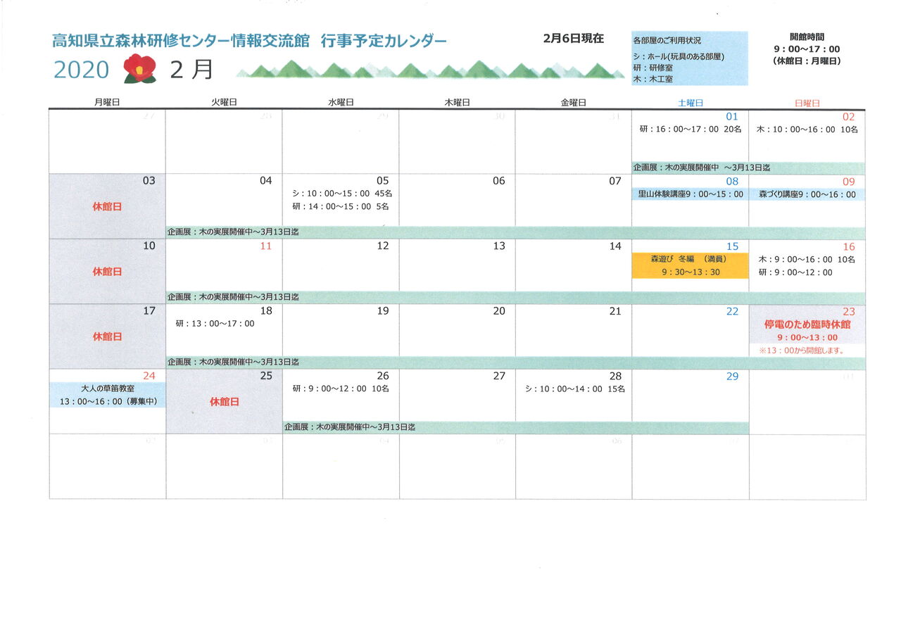 現在の情報は、2月26日までの予定表です。